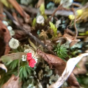アカミゴケ(赤実苔)ハナゴケ科ハナゴケ属 1⃣ モンローリップを探しました。 似てるかな〜? アカミゴケは、コケの仲間ではなく、菌類と藻類が共生してできる地衣類です。 名前の由来は「赤い実をつけるコケ」という意味ですが、実際には「アカミゴケ」は「赤い子器」をつける地衣類です。 北海道から本州、四国の山地や亜高山帯の地上、岩上、腐植土などに生えます。 🏷️ 真っ赤な火曜日
