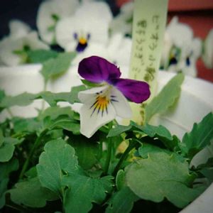 自家採取のビオラ 野うさぎミーモが 咲いてくれました♪ 親よりは丸耳かな(*^艸^*)