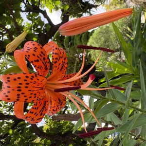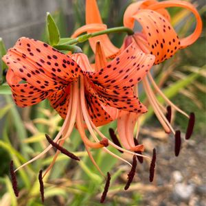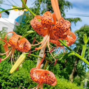 鬼百合(タイガーリリー)🐅 知らない間に咲いています オニユリはタネが出来ないので 葉の間に付くムカゴで繁殖するそうです 自然って面白い