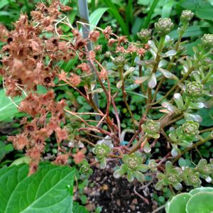 枯れると思って、地植えした小人の花束、と先祖戻り。 先祖戻りの地植えは、5月31日。 (小人の方は6月14日鉢📷ありでした。何時地植えしたかな〜) 花が咲いた枝は枯れましたが、他は無事そうです。