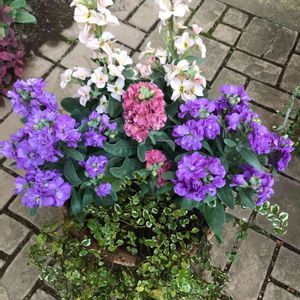 今日トマト園芸さんで 買った ストック苗の MIX寄せ 可愛く まとまりました 💕
