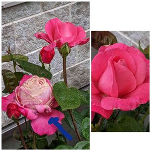 恋結び2番花 矢印は昨日私がやらかしちゃった可愛そうな花の姿💦朝時間なくてホースを片手にグルリと回ったとき水やったほうがいいけれど時間ないし、まだ大丈夫かな?昼まで持つかな?→帰宅したらドライフラワーですか!?の状態に💦ごめんよー😭