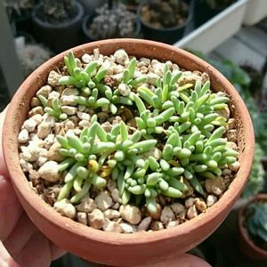 初めて見たときなんだこれ?と思い思わず買ってしまいました^_^♬!!あんまり見たことなかったけどフニフニした葉っぱが可愛いです❤️ 育て方よくわからない笑💦💦…夏型?冬型??夏越せるか不安です(*´-`)…