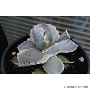 令和になってもオヤジは多肉狩り(¯∇¯٥) ② ●番号は実店舗で物を目にして手にとってのお迎え。 ○番号は \_ヘ(Д`*) カタカタ… (*´∀`)σ凸ポチッ 実際は平成ラストの落札でしたが届いたのが令和になってからですのでこちらにカウント Agave isthmensis "Kabutogani"marginata アガベ イシスメンシス ‘カブトガニ’ マルギナータ 和名:アガベ 兜蟹 斑入り お迎え:2019/ 5/ 3 撮影 :2019/ 5/ 3 発根促すために水苔巻いてます。2.5号鉢 室内撮影でちょっと色味が変わっちゃってます😅 カブトガニと言ったら【連棘】でしょ🤔 この大きさでもこの連棘。 探していた特徴が良く出ている個体に出会えました \(。˃ ᵕ ˂ )/ ✧*。 ♪⁽٩( ᐖ )۶⁾⁾ ₍٩( ᐛ )۶₎♪ ‹‹\( ˙▿˙ )/››‹‹\( ˙)/›› ‹‹\( ˙▿˙)/›› 「大きくなったら連棘出るよ」 なんてヘタレな私に出せるわけないじゃん <(๑¯﹀¯๑)> エッヘン!!?ナゼエバル この後、連棘維持できるかは育て方次第……だ、そうです (´・ω・`;)ハァー・・・ 極端な話、連棘であれば斑が入ろうが入らまいがどちらでも良かったので斑は不鮮明です( ¯―¯٥) 注)ポタトルム ベルシャフェルティ(怒雷神)の連棘を兜蟹とすることもありますが、 そもそもポタトルムとイシスメンシスの関係もはっきりしてないようなので、 私見として連棘が著しい物を兜蟹としています。というより考えないようにしてます ('ロ'('ロ'('ロ'('ロ' )!!!