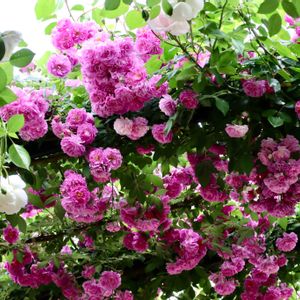 良く咲く子シリーズってワケじゃないけど、この子も四季咲き性が強いです👍🏻ランブラーなのにね✨🎶 第2ガーデンの一番奥は野菜用のハウスの骨組みを使ってトンネルっぽくしてるのだけど、そこに這わせてるのがこのスノーグース🤍🌿これはトンネル内部から撮ってますが外側も花いっぱい✨かなり伸びたから来春は期待大だなぁ🥰☘️ ちらり左に見えてるのはジンジャーシラバブです💛