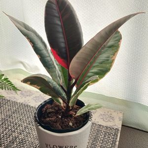 ゴムの木(フィカス)🪴絵の具で塗り重ねたみたいな不思議な色の葉っぱ🤗 上に行くほど、ピンク色が濃くなってきて一枚一枚違う色合いが可愛い💚💛🤍💗 ( *˙ω˙*)و グッ!