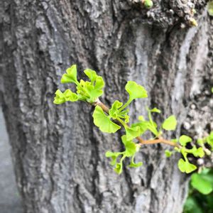春のいちょう💚 勢いを感じます⤴️✨ 切れ込みのある葉と無い葉がありますね 🦆アヒルの足「鴨脚(ヤーチャオ)」から「イチョウ」となったとされていますが…