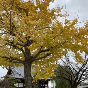 立ち寄ったお寺のイチョウの木 少し葉っぱが散り、 冬が目前に!