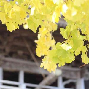 お寺の鐘楼 昨年のイチョウは紅葉遅く緑のままで投稿 今年は大きなイチョウの木半分は落葉 何十年たっても素敵なイチョウの木