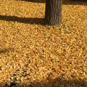 銀杏のじゅうたん 昨日の悪天候から一転、快晴の今日 銀杏の落ち葉にすっかり覆われた地面に 秋の深まりを感じました