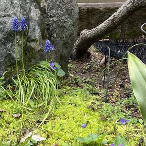 |ョ''ω''〃)おはようございます♪ 朝から強い雨☔が降っています 昨日の我が家の小さな庭より・・💕 原種チューリップ・フミリス咲き出しましたが、今日の雨☔️で心配😢 庭のあちこちで咲いているツルニチニチソウです〜 🌷💜🌷💜🌷💜🌷💜🌷💜