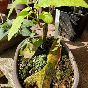 お寺さんから頂いたカリンの実から取り出した種は50~60粒。一度冷蔵庫で保存して、数年前の春に蒔いたらほとんど発芽しました。 寄せ植え、豆盆栽、地植え…間引いてもまだまだ残る苗木。 サザエを中央に、石付き盆栽ならぬ、巻き貝付きの寄せ植え盆栽を作ってみよう! 太くなるうちに貝を巻き込んで、面白い物ができないかなぁ…