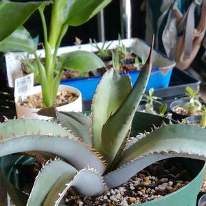 アガベ・チタノタ追加! この子もコンパクトタイプで、ブルーに育つようです。 根が鉢底から出てるので、はよ植え替えてあげたい。