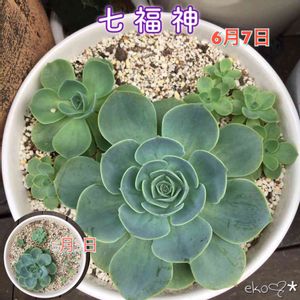 七福神♡ 七福神丼計画❣️(経過報告) 前picの七福神丼の詳細。 上段✦︎いままでの経過(*'v'*) こうやって見ると随分大きくなったなぁ〜 ウレc!!*。.:*ヽ(*´∀︎`*)ノ*。.:*ウレc!! 下段✦︎何とお子ちゃまができてました〜୧(ᕯ˙ᗨ˙ᕯ)୨ 左は一番でっかい子の根元🌱 右は2番目にでっかい子の根元🌱 順調に育ってね〜( ˊᵕˋ* )