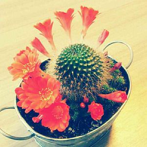 1年ほど前にホームセンターで買ってきた ちっこいサボテンが花を咲かせてくれましたヽ(´▽`)/ 目の覚めるような花色です✨✨