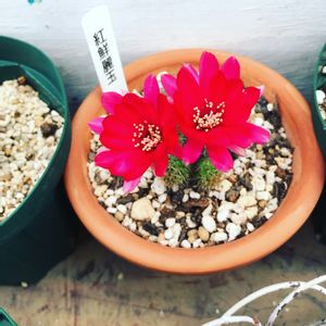 紅鮮麗玉。 冬の水切りからまだ完全には復活してない姿なのに、2輪開花✨ 真っ赤でかわいい♡
