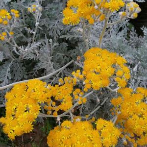 白妙菊: 緑の庭木の中で この白い葉は色合いに変化をつけてくれます。 年々大きく育っています