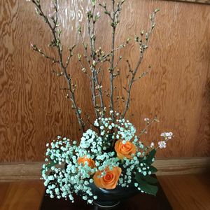 友達から啓翁桜🌸頂いたのでアレンジメント(*´∇`*) 桜が満開になるまでお待ちくださいね🌸
