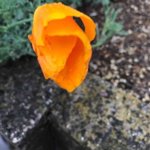 カリフォルニアポピー🌼 雨☂️降っても風吹いてもたった一個頑張って咲いてる🌼