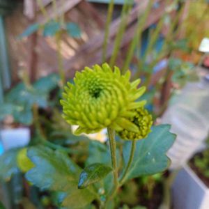 朝日を浴びて黄色に見えますが、グリーンのポンポン菊です。 たくさん咲き出しました。 毎年咲いてくれる菊は、庭植えというより畑の隅っこの草抑えに一役買ってくれています。