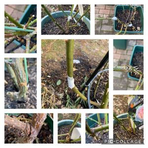 雪で、裂けたり、折れたりしたバラたち 接木テープでぐるぐる巻いてみた😰 春に咲いてくれると嬉しいな😆