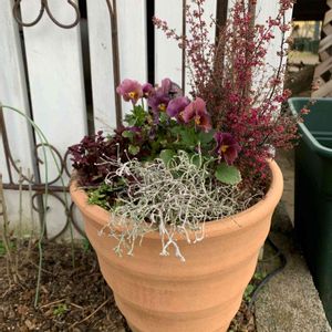 このまま雪にすっぽり埋まっていた寄せ植えさん ごめんよ🙏 しまい忘れてしまって… 2メートル近い積雪にも負けず、静かに眠っていてくれました^_^ たくさん咲いてね♪