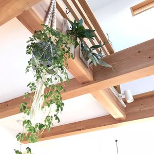 昨日のポトスちゃん様にプラントハンガー作りました✨✨ めちゃくちゃ簡易的なやつなので、今度はちょっと手の込んだやつ作ってみよ😊✨✨