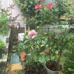 ノヴーリスが開花したとき、紫のバラもいいなあ、と思って今年入手した夜来香です。 まだ花は小ぶりだけどかわいいねえ♪ヽ(´▽`)/