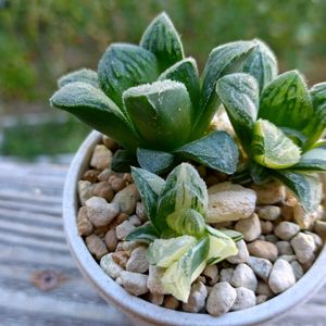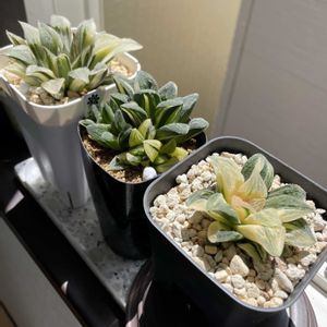 最近ハオルチア検索の時間が長くなり、続々とお迎え。 最後に迎えるのはエメラルドLED錦と決めています。 昨日届いたタイガーピグ錦(フリマアプリで)。 ツヤツヤしているハオルチアが好きな私ですが、GSを見ていてザラザラ系の良さにも気づきました(最近)😄 白帝城とかミラーボールなども。 小さいけど、前2つはいい感じの斑。 後ろのものは斑なしだけど、普通のタイガーピグとして育てます。 どれも根がしっかりしていたので、よく育ちそうです👍️ ちなみに、2枚目は2日連続で鳥に食べられたおもちとおはなです😢