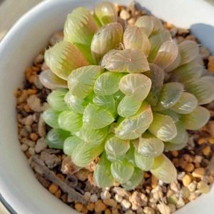 成長記録⭐️ ハオルチアオブツーサさん 東向きの棚で朝日のみ当たる場所で 育成中🌱澄んだいい色です😇👋