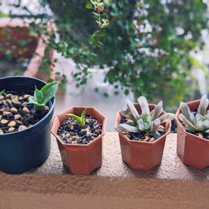 友人から株分けして貰ったアガベとハオルチア 大事に育てないと・・・(この翌日に鳩襲来でひっくり返されました)