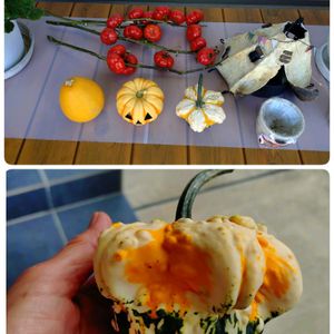 いつものスーパーで 変わったオモチャカボチャみぃ〜っけ 作り物かと思い店員さんに声かけ 本物でしたーー🤣 来年種蒔きしたら同じに出来るかな? また1つ楽しみ増えた。 元気でいなくちゃね😆
