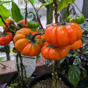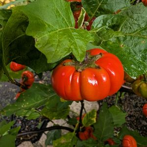 ハロウィン🎃なので、見た目がカボチャの植物を📮 パンプキンツリーなんて呼ばれる事もあります。観賞用のナス科の植物です。