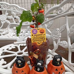 ここ最近、久々に投稿というのが続いてるなぁと思いつつ。。。 少し涼しくなって花苗も少しずつ並び始めましたね。可愛い鉢も手に入れたので意を決してハロウィン🎃っぽい寄せ植え作ってみました😊 ソラナムとトウガラシがあればハロウィンって安直すぎるかな😅