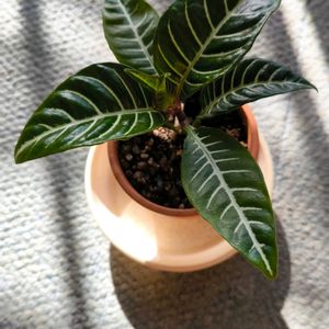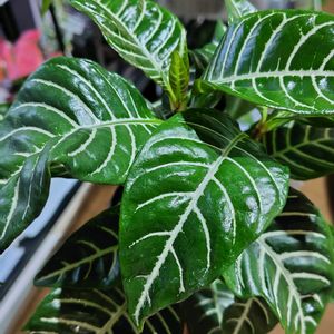 まもなく黄色い花が咲くアフェランドラ・S・ダニア。 下のアフェランドラ・S・シルバークラウドは花が咲きにくいらしいです。 まるでフェークグリーンのような葉っぱをしており、ゼブラプラントと言われていてシマウマの柄のようです。