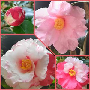 今日の母の庭 ①②今一番華やか 乙女山茶花 追記紅乙女椿と判明しました。 隣の山茶花の花びらに惑わされ山茶花と間違えました。 ③白侘助 ④数寄屋侘助と勝手に思っています。優しい色と姿が素敵です。 ⑤ずーと有楽侘助と思っていましたが意外に大きく開きます。どなたかわかりますか?紅侘助かしら? 追記 モコさんより土佐有楽ではないかと教えた頂きました💕