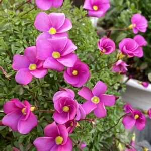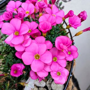♡ オキザリス 桃の輝き ♡ 今 満かーい💞💞💞 去年のこぼれ種から 集めました〜🥲 大変でしたが頑張ったかいがありました。 こんなにかわいく、たくさんのお花! でもって、あちこちに飛んでいろんな鉢にもお邪魔しています(*´︶`*)ノ"