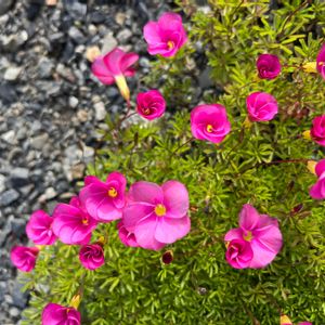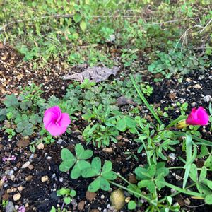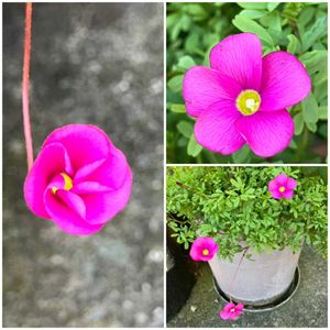 今日のお花 シコンノボタン 今日は1輪咲いていました😊 オキザリス 桃の輝き 咲き始めました🌸 花びらに穴が空いてます 蕾の時に誰かに食べられたのね😂