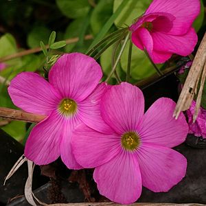 昨日の今日のお花「オキザリス」 カタバミ科 カタバミ属 カタバミ属(かたばみぞく、学名Oxalis)はカタバミ科に含まれる植物の一群である。花の美しいものは園芸用に栽培され、多くは学名カナ読みでオキザリスと呼ばれる。 ウィキペディアより ① オキザリス「桃の輝き」 過去picから~ 一昨年にお迎えしました 今年も葉が繁りもうじき開花しそうです✨ ② オキザリス「トライアングラリス」 義母の庭に咲いてます✨ ③~⑤ イモカタバミ オキザリス「アルティキュラータ」 ・イモカタバミはかつてOxalis rubraとも呼ばれてましたが、現在は Oxalis articulataが標準とされています。 ・園芸上では、フシネハナカタバミもまとめてイモカタバミと呼ばれることが多いです。 AIより ①~③ 過去pic ④⑤ 2025.11.11撮影🤳 hotaruさんの投稿を参考に少し光を絞って暗く撮影してみました😅 hotaruさんのpic程妖艶にはナラナカッタワー💦