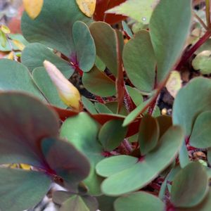 おはようございます👋 今日のお花オキザリス❤️💛 まだ小さな芽が🌱出たばかりが多い中 ルテオラは早くも花芽が見えています😊 表は🟢裏は🔴の葉っぱ🌿がとっても 綺麗で一目惚れ年々増えています😍