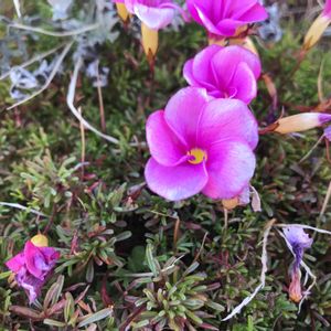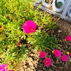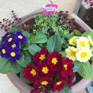 三色のジュリアンとオキザリス桃の輝き❣️ ジュリアンはよく咲いていますが 桃の輝きはなかなか咲きません😥