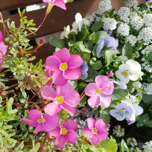 オキザリス 桃の輝き🍑 お花の無い状態でお迎えしたものが開花しました。 我が家では一時期オキザリスブームが来て何種類か居たときがありますが、いつの間にか一つ減り、二つ減り😓 この時期、晴れた日に元気を貰えるのでまたお迎えしてみました。やっぱり可愛いです😍 リースのビオラ、アリッサムと一緒に。
