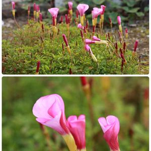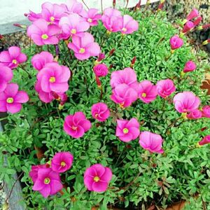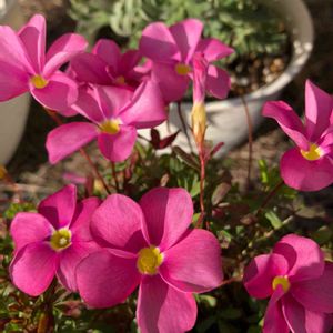 太陽の光を浴びて、オキザリス桃の輝きが 輝いておりました✨✨ 鉢に植えっぱなしでギュウギュウ詰め😅