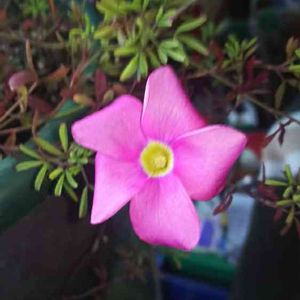 オキザリス 桃の輝きが暖かな日差しを浴びてパッと開きました!