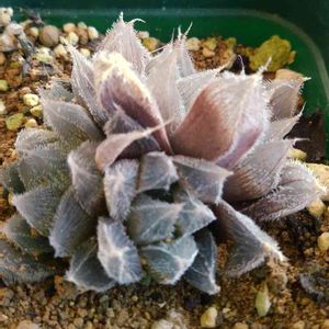 ハオルチア 不明😅 たぶんボルシー HCで、100円の処分価格で売られていた子😢 軟葉系ですが、 乾燥し過ぎて変色しているみたいなので、様子見✨ 葉っぱペラペラ~🍃 さて、どんな姿に化けるのか⁉️ 誰なのか⁉️⁉️ とりあえず、毛ガニくん🦀って呼んでます😅😅