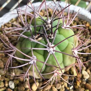 こんにちは! やっと、クリローさんたちの葉切りが終わりました。 今日のサボテンはギムノカリキウム『新天地』さんです! グリーンの肌に刺が赤くて、綺麗です! 新天地は、色々な個体差があるらしく、もう一つは、全く違う表情です!