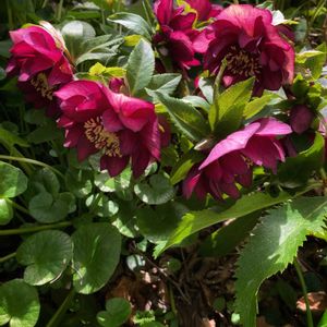 ①3/18投稿のレンテンローズ(クリスマスローズ)ダークパープルダブルが満開 ②3/17投稿のレンテンローズ(クリスマスローズ)ホワイトピコティダブルも満開 ③3/23投稿のレンテンローズスポット。我が家唯一のスポットと投稿しましたが、よくよく探してみたら他にも咲いていました ④1/10投稿の植え忘れたスイセンスイートデザイア、その後鉢に植え付けたら、ミニスイセンで咲きました ⑤ヒメリュウキンカに占領されました