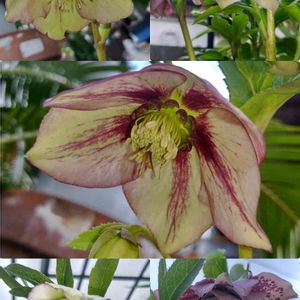 こんにちは👋😃 午前中、ぼーっとしてたらまた元気になりました。 🏷️咲き始めのお花たち 引き続き、レンテンローズ、ヘルボレス・オリエンタリス ダブル咲き 暖かな日差し、別の鉢は水切れ、慌てて水やり、直ぐに復活、危ない危ない😅💦💦 この子は無事でしたが、ようやく咲き始めました。 去年は植え替え直後で小さな花でしたが、今年は順調に幾つもの蕾が出ています。 現在は、外側がピンク、内側がクリームイエローに赤いスポットが密に付いてます。 咲き進むに連れて、内側もピンクに染まる予定です。