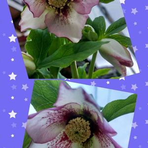🏷️咲き始めのお花たち レンテンローズ、ヘルボレス・オリエンタリス、4株目が咲き始めました。 この子は弁が尖った咲き方です。 白と紫のバイカラー、ピコティとベインだったかな❓️🤔 庭に植えてたから、良く見えてなかったのかな❓️😋