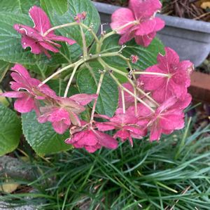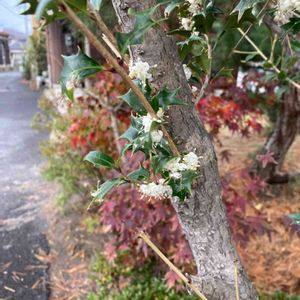 ずっとずっと咲いているんです。でも、ずっと下を向いてて。葉っぱ🍃は紫陽花みたいに見えるのですが、もう12月にもなるし…
